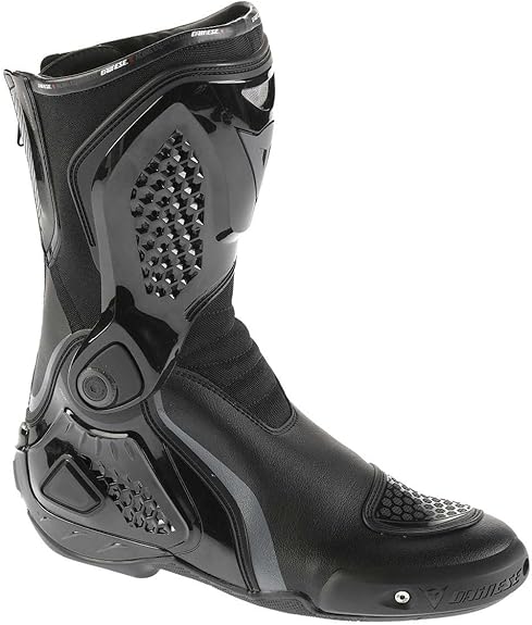 Confeccionadas en Lorica y tejido D-Stone. Ofrecen un alto nivel de seguridad gracias al sistema antitorsión articulado D-Axial de TPU. Puntera reforzada con nylon. Zona de la tibia y talón reforzada con poliuretano termoplástico. Inserciones de tejido elástico para mayor comodidad. Inserciones de poliuretano termoplástico en la parte interna de la bota para un mayor agarre a la moto. Gracias a la regulación de la pantorrilla, la bota se adapta a las diferentes complexiones. Cierre con cremallera en la zona posterior. Protección para cambio. Deslizaderas reemplazables de plástico.